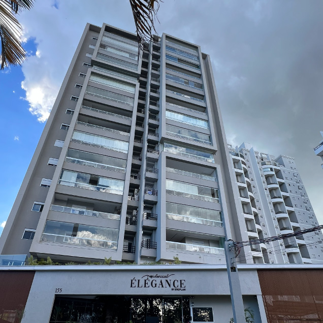 O Élégance conta com torre única de 14 andares, sendo 4 apartamentos por andar com opções de 112m² ou 119m² e 2 vagas de garagem.