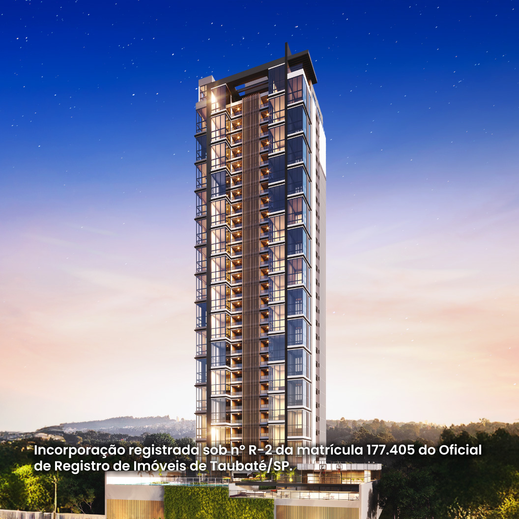 A fachada marcante com folhas de vidro reforça a proposta de sofisticação e leveza arquitetônica. A vista permanente para a Serra da Mantiqueira é um privilégio raro, somado ao fato de o empreendimento estar cercado por vizinhos de altíssimo padrão, como o Taubaté Village, o Supreme e o próprio Tríade.