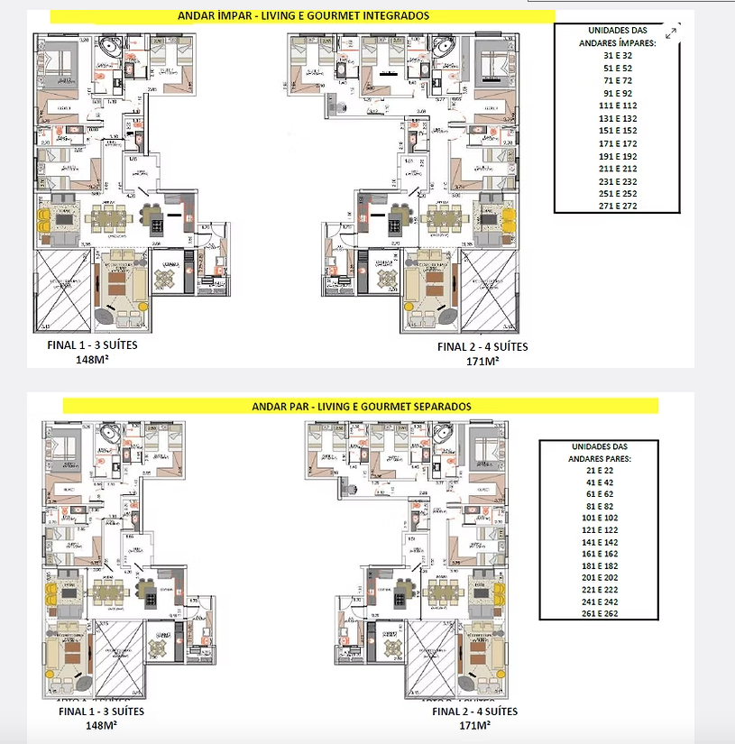 Com uma torre única e imponente de 26 andares e apenas 2 apartamentos por andar, o Grand Garden garante privacidade, exclusividade e uma experiência de vida contemporânea. São 52 unidades, com plantas de 148m² (lado direito – Tríade, com 2 vagas) e 171m² (lado esquerdo – Supreme, com 3 vagas), todas com pé-direito duplo no living e quartos voltados para o sol da manhã, proporcionando iluminação natural e ambientes amplos.